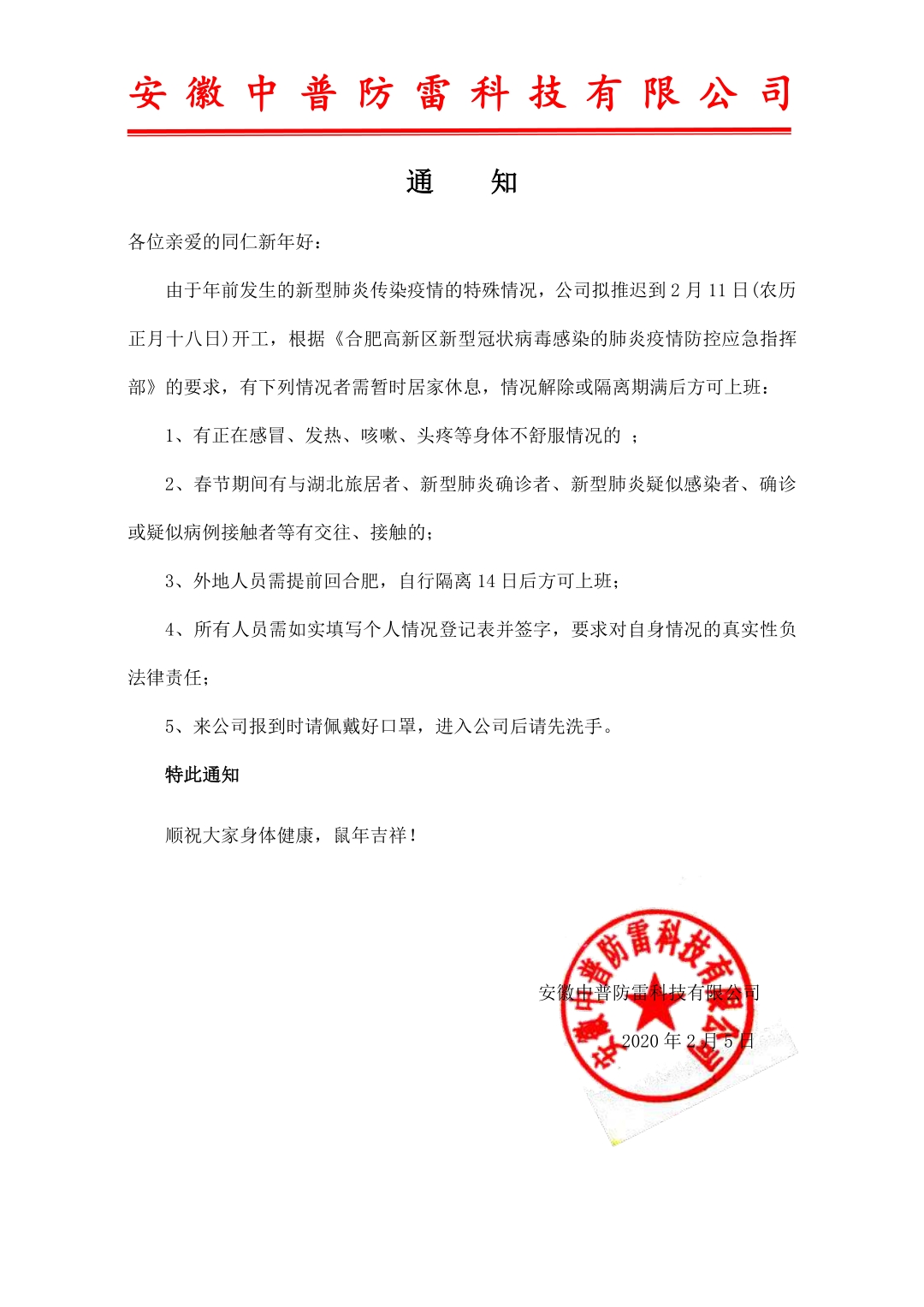 安徽中普防雷“關(guān)于2020年春節(jié)放假通知”